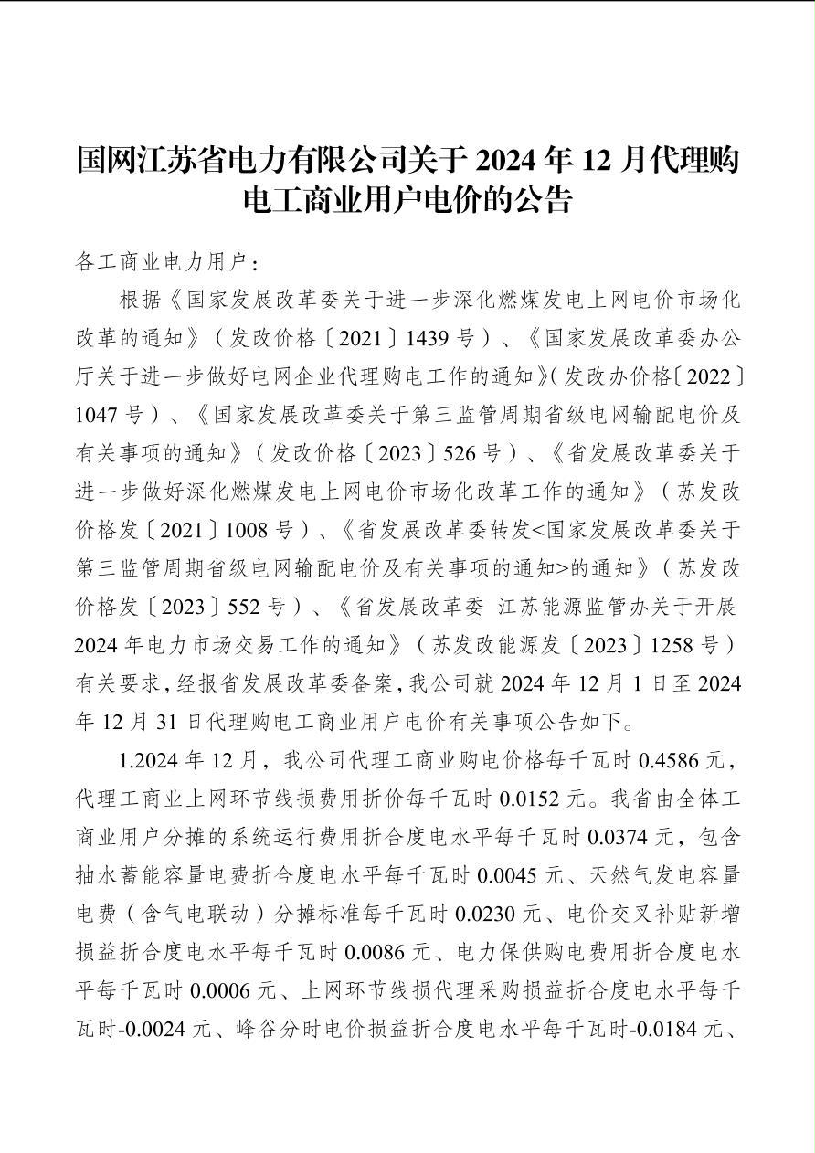 国网开云app官方登录入口有限开云(中国)关于2024年12月代理购电工商业用户电价的公告